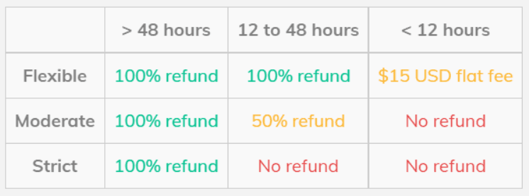 Good to know: You can learn more about the specifics of the chosen cancellation policy by clicking on the tool tip, or by referring to the following chart:
