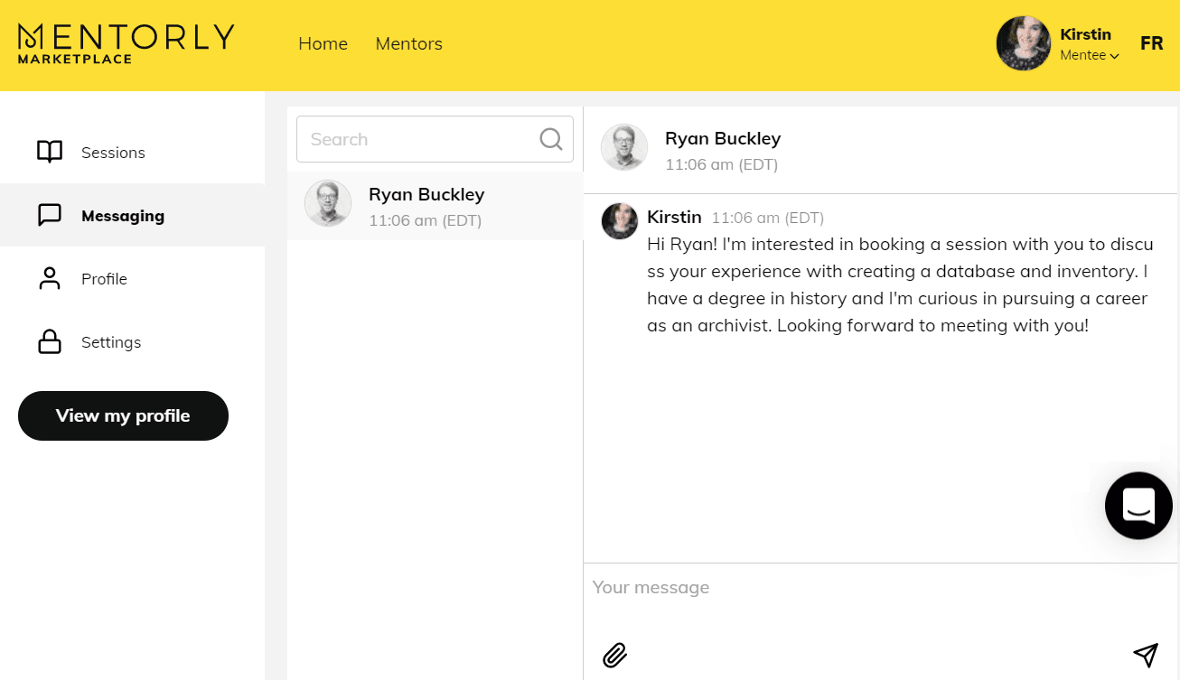 Good to note: You can also send attachments to your mentor by clicking the paper clip icon beside the text box.