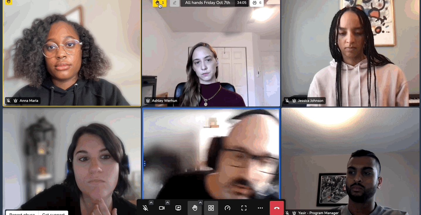 Click on the yellow hand icon at the top of the video session